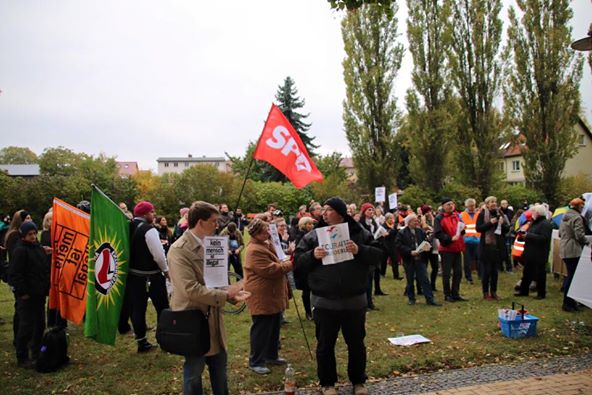 Überschattet wurde die Stadtverordnetenversammlung von einer Demonstration der NPD, welche Kriegsflüchtlingen und Asylsuchenden die Hilfe verweigern will. Als Antwort darauf verabschiedete die Stadtverordnetenversammlung mit dem Beschluss zum Thema Asyl auch eine kurze Resolution, in der sie sich von den Aktionen des NPD-Abgeordneten Robert Wolinski klar distanziert und für ein tolerantes und weltoffenes Velten eintritt. Viele Veltener kamen ebenfalls vor das Rathaus und zeigten mit den Vertretern von Linke, CDU und SPD Gesicht für unser buntes und vielfältiges Velten.